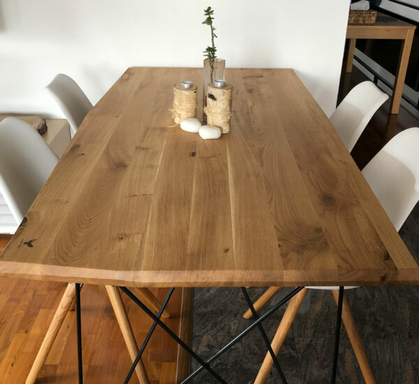 Dubový jídelní stůl z masivu byl tvořen tak, aby byla co nejvíce zachována jeho přírodní podoba a vynikla jeho výrazná kresba.