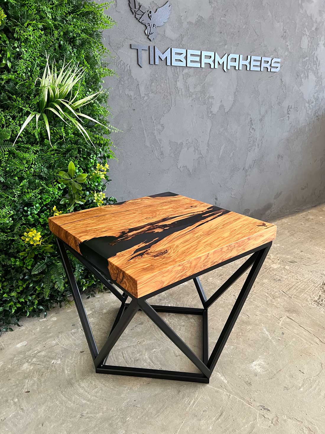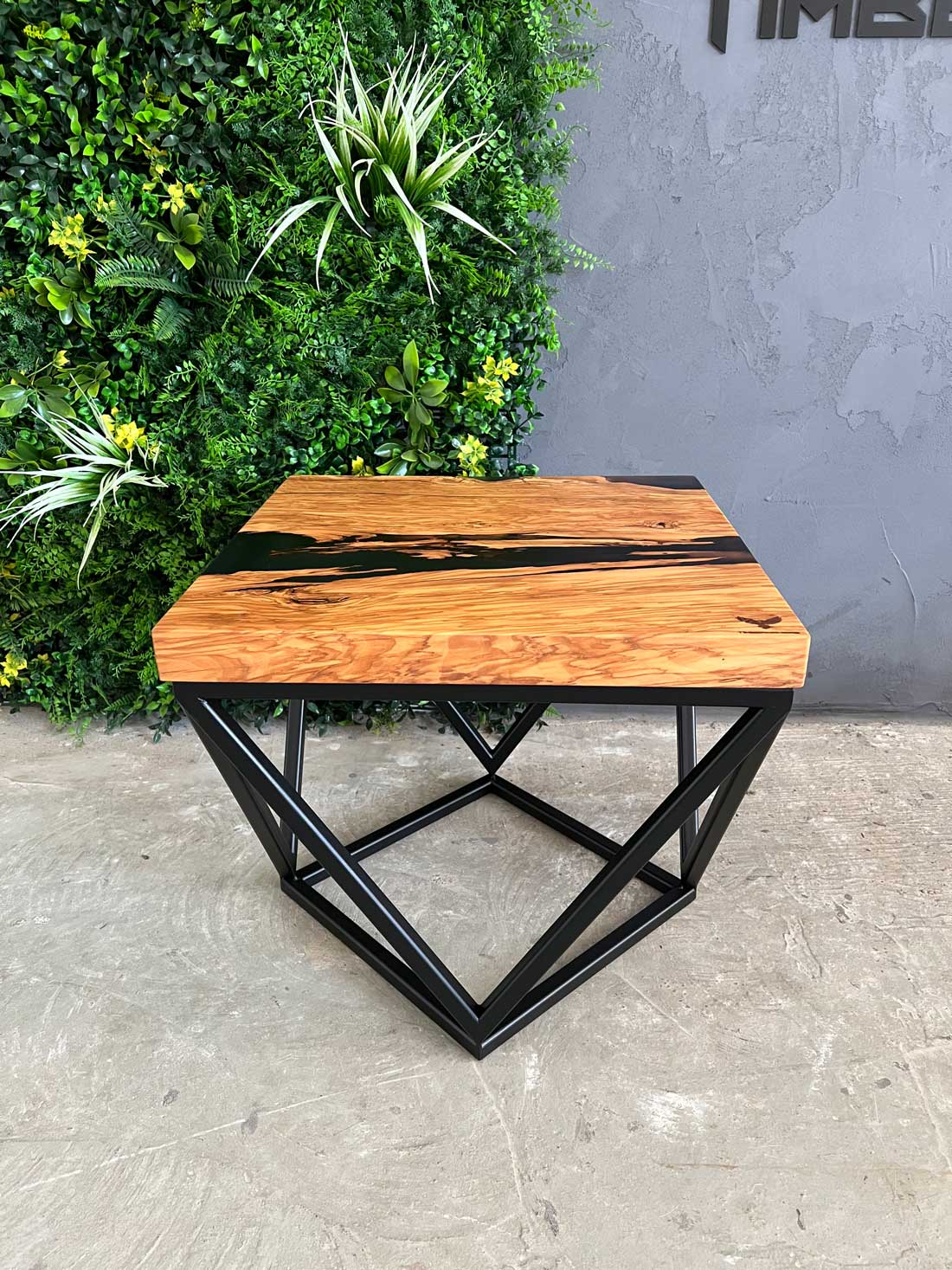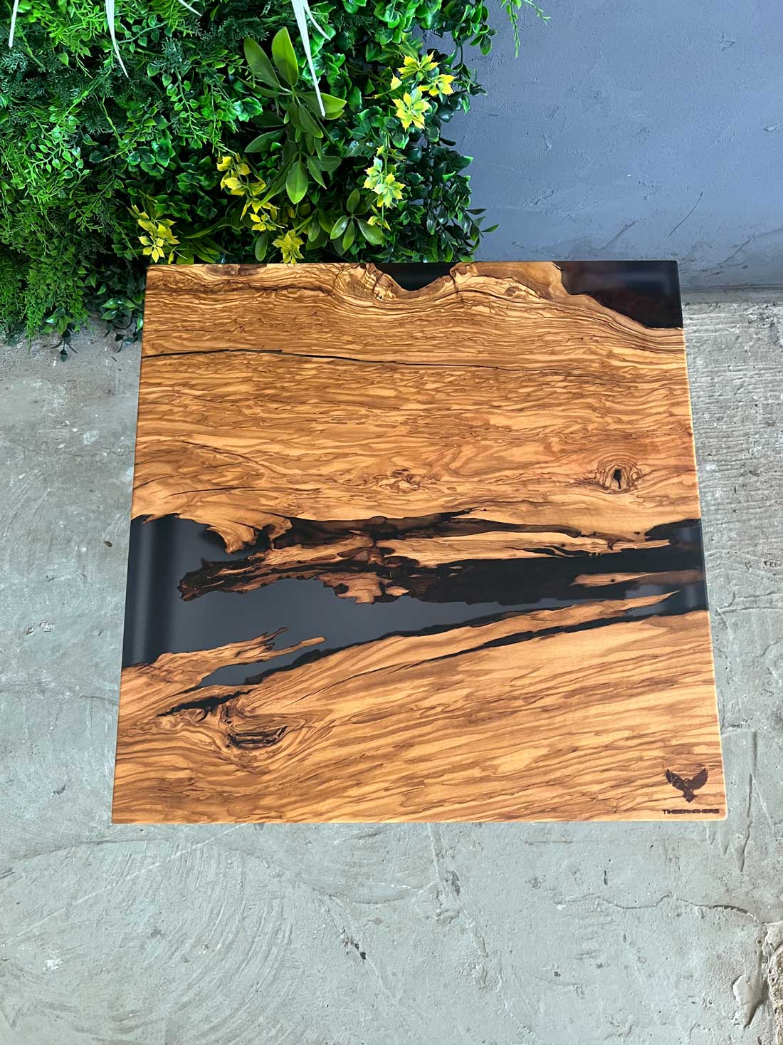 Designový stolek z cca 600 let starého olivového kmene ze Sicílie, v kombinaci s pryskyřicí LIGHT GREY. Exkluzivní limitovaná série z olivového dřeva – nyní v Black Friday akci se slevou 50 %. Kompaktní rozměry 50 × 50 cm, výška 45 cm, masivní deska o tloušťce 5 cm.