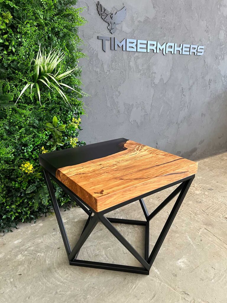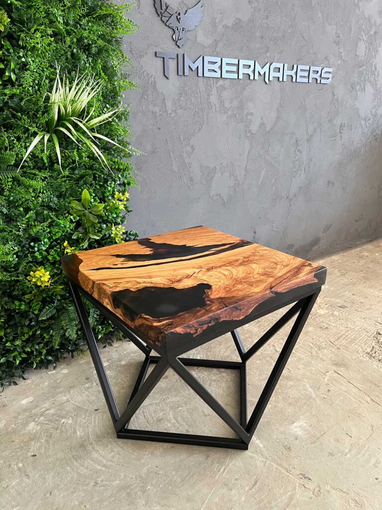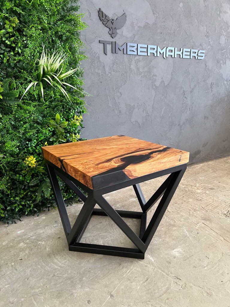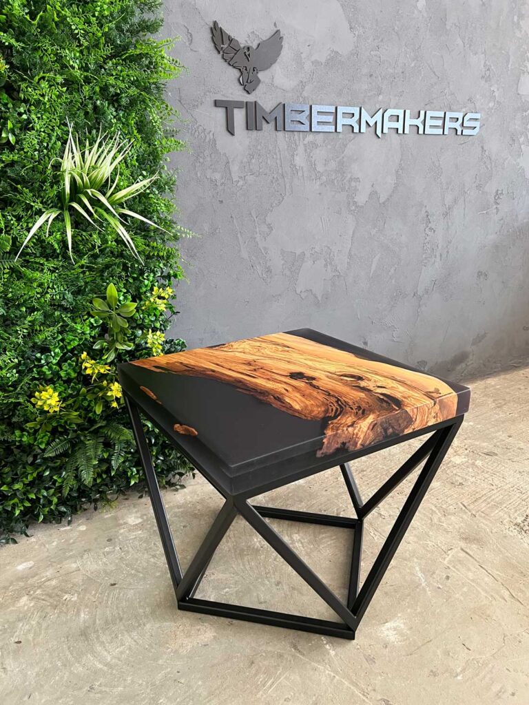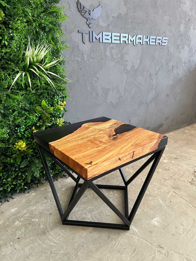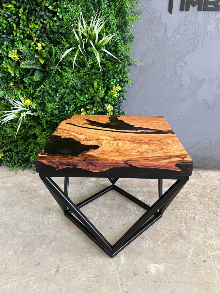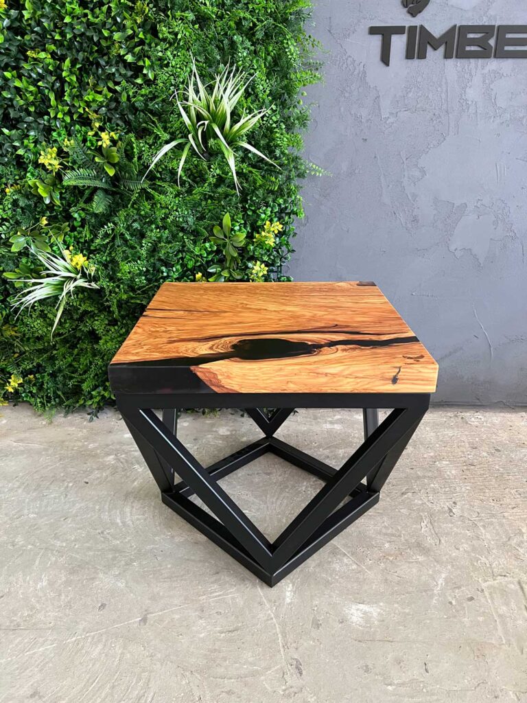 Designový stolek z cca 600 let starého olivového kmene ze Sicílie, v kombinaci s pryskyřicí LIGHT GREY. Exkluzivní limitovaná série z olivového dřeva – nyní v Black Friday akci se slevou 50 %. Kompaktní rozměry 50 × 50 cm, výška 45 cm, masivní deska o tloušťce 5 cm.